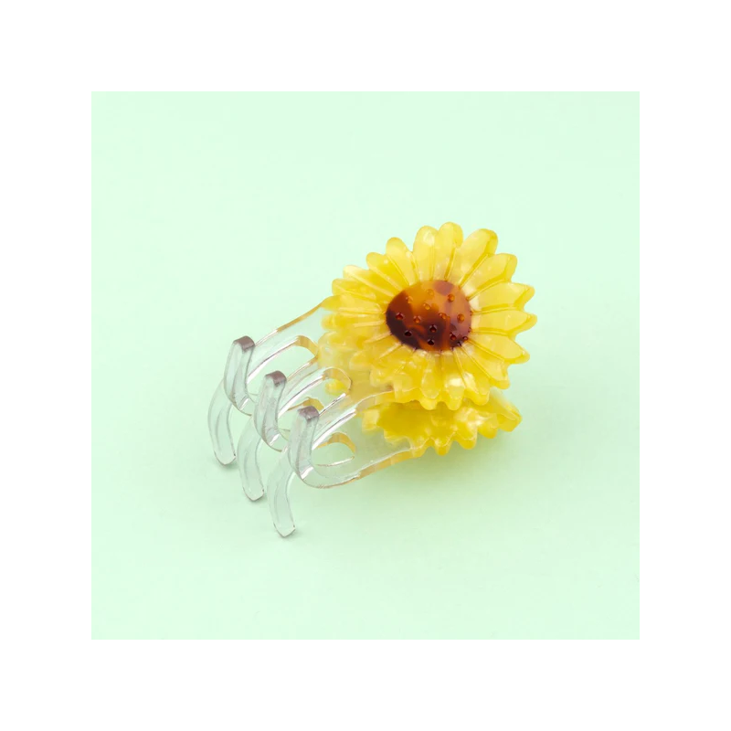 Un baby tournesol pour apporter couleur et gaieté à toutes nos coiffures ! On adore cette jolie fleur jaune qui, comme nous, adore avoir sa truffe en plein soleil. Une pince à cheveux certes mini, mais qui attrape les cheveux aussi dignement que les grandes grâce à ses dents super pratiques.