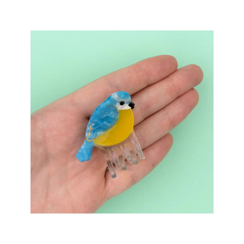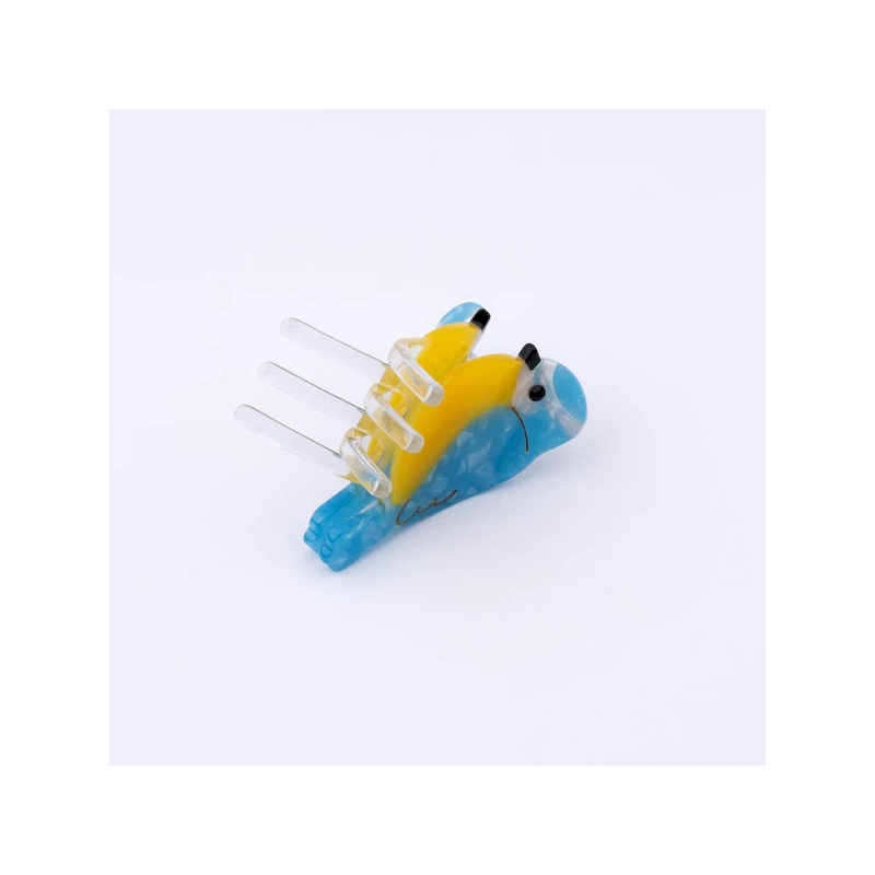 Une mini pince à cheveux irisée en forme d’adorable petite mésange. On craque pour ce mini oiseau coloré au bidon dodu qui semble tout droit sorti de nos dessins animés préférés. Un petit accessoire jaune et turquoise à clipser dans ses mèches à volonté.