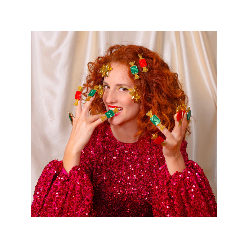 L’accessoire festif par excellence : ce duo de papillotes rouges et vertes avec leurs détails dorées pailletées. Des barrettes colorées qui trouvent leur place dans les cheveux des petits comme des grands.