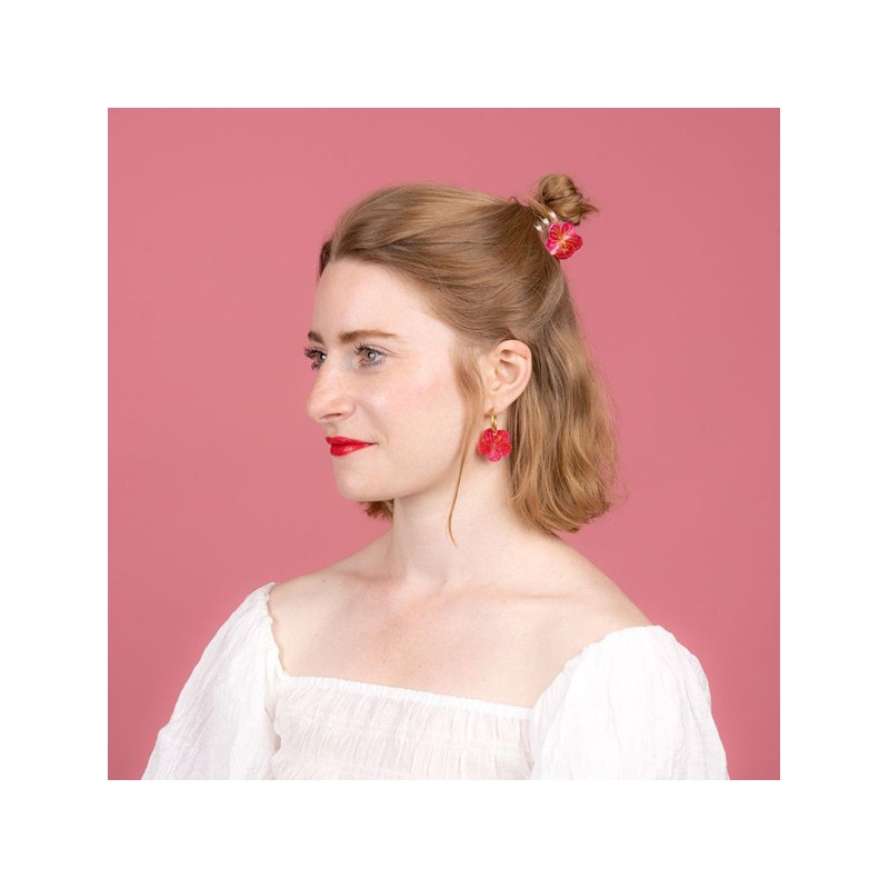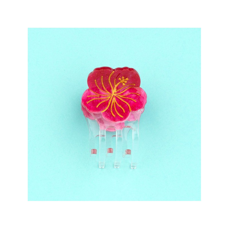 Une petite pince à cheveux agrémentée d’un joli hibiscus rose fuchsia à paillettes ! Cet accessoire se glisse dans tous les chignons et demi-queues pour des looks fleuris et colorés. Ne vous fiez pas à sa taille mini, elle fait tout aussi bien qu’une grande et agrippe sans problème les chevelures les plus imposantes !