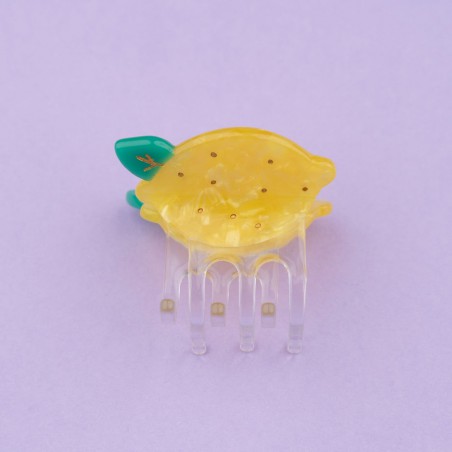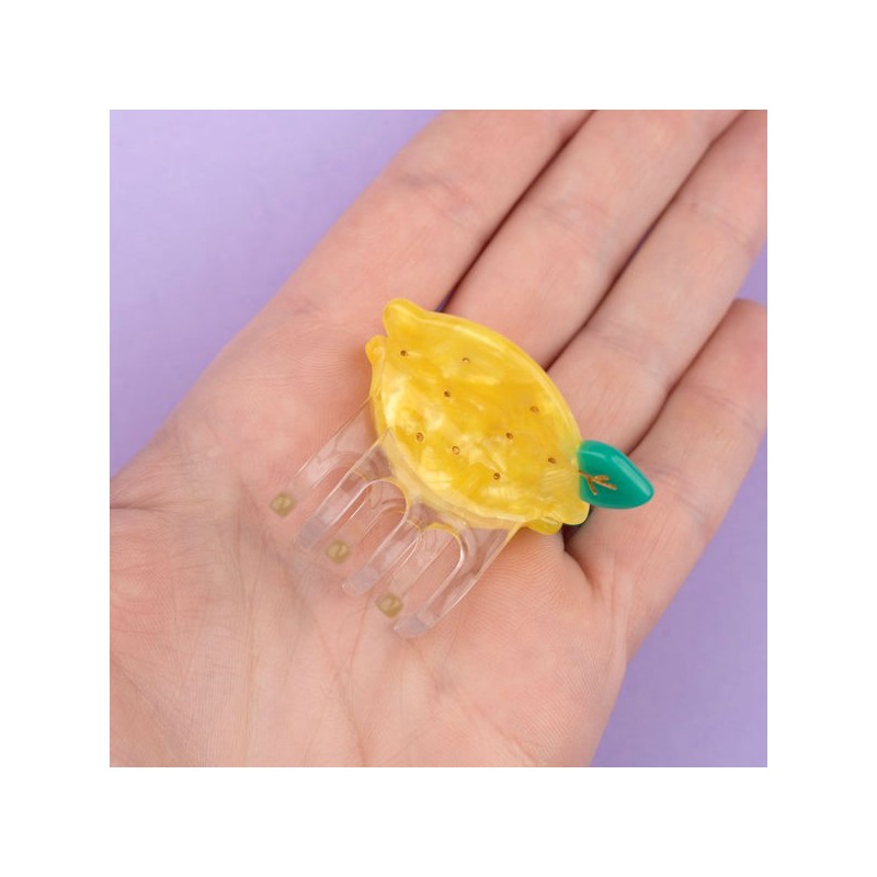 Voilà un citron miniature qui malgré sa petite taille tiendra les chevelures les plus longues, et comblera également les cheveux courts ! Son attache au top s’agrippe à volonté à tous les chignons et maintiendra en place toutes les mèches rebelles. On craque pour sa couleur jaune flashy qui ajoutera la touche de vitamine qu’il manquait à nos looks !