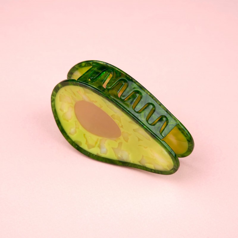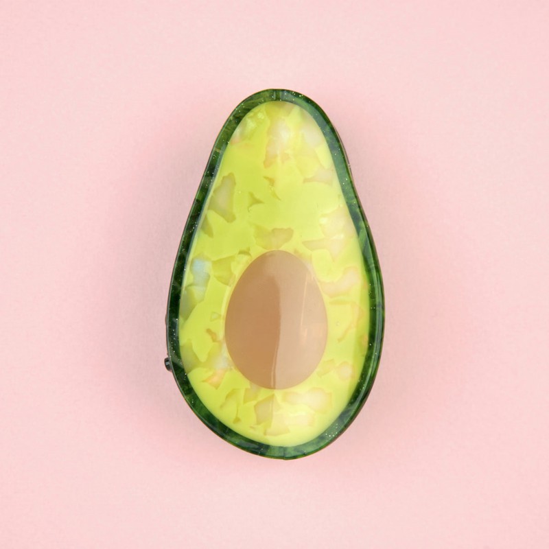 Miam miam, voilà un avocat des plus divins ! On l’avait découvert sous forme de miroir il y a quelques années, on le retrouve aujourd’hui en pince à cheveux. Cet accessoire coloré nous suit gaiement dans toutes nos aventures en s'agrippant avec joie à l’anse de nos sacs.