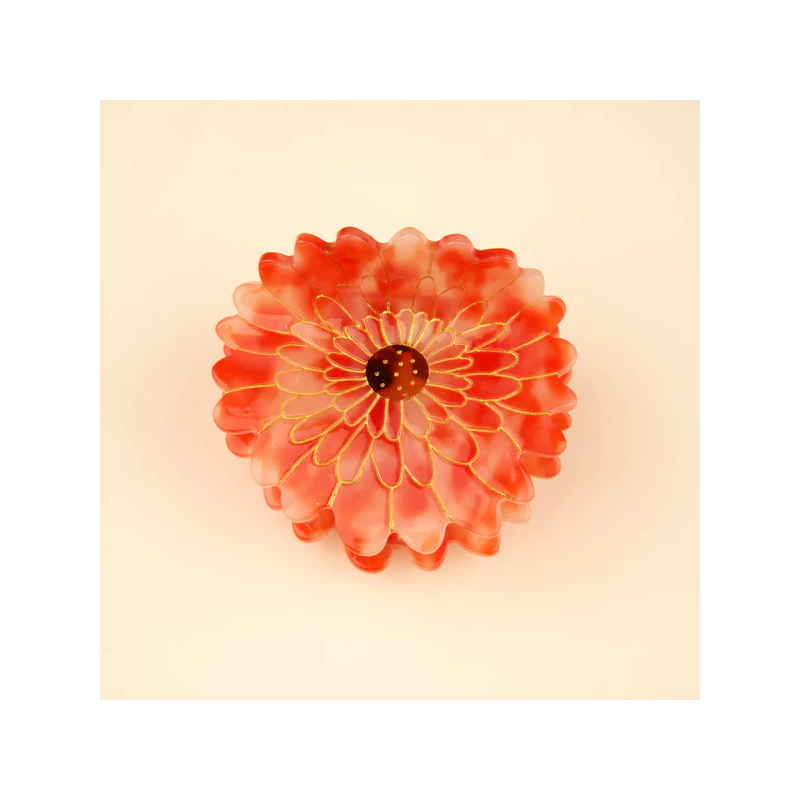 Place à une pince à cheveux dont la bôté fait parler jusque dans les chaumières : la pince Dahlia ! On raffole de ses pétales infinis et de ses teintes rouges nuancées qui la font rayonner dans nos chevelures. Elle fleurit avec joie dans les cheveux mi-longs et longs, parfaite pour maintenir un chignon ou une demi-queue pour les crinières les plus imposantes.