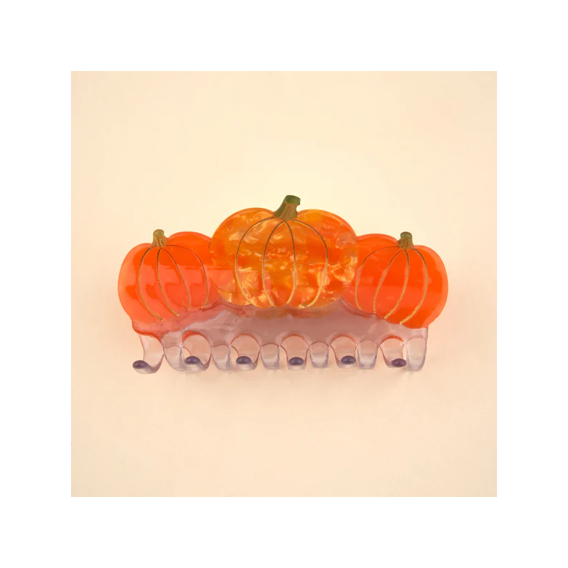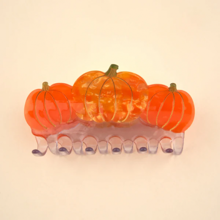 Non pas une, non pas deux, mais bien trois citrouilles madame zé messieurs ! Toujours plus de courges pour la plus belle des pinces à cheveux XL. Elle attrape parfaitement les chevelures imposantes qu’elle réhausse en un mouvement. À nous les coiffures d'automne à gogo !