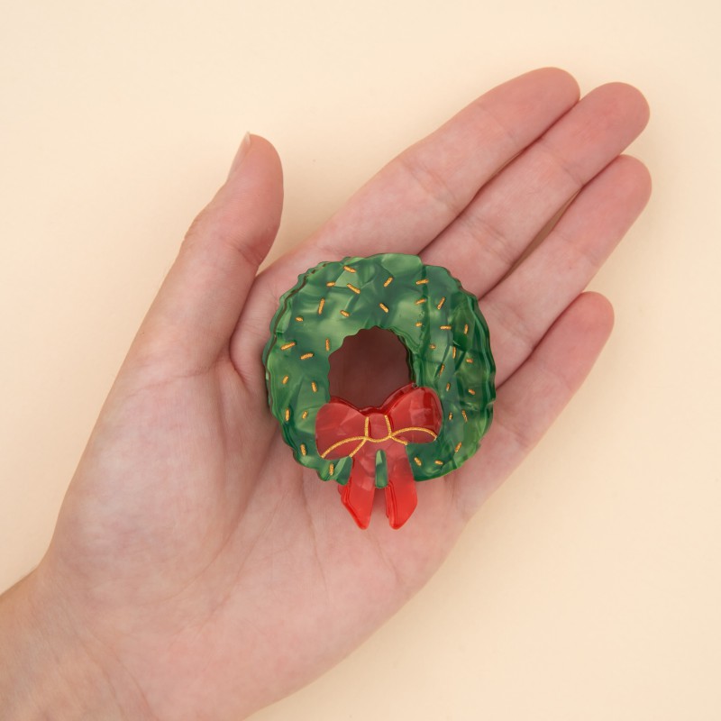 Voilà la pince à cheveux la plus originale de la saison : celle en forme de couronne de sapin pardi ! Nous voilà tout droit plongé.e.s dans un téléfilm de Noël, de ceux qu’on regarde tout le mois de décembre avec un bon chocolat chaud, en siestant sur le canapé.