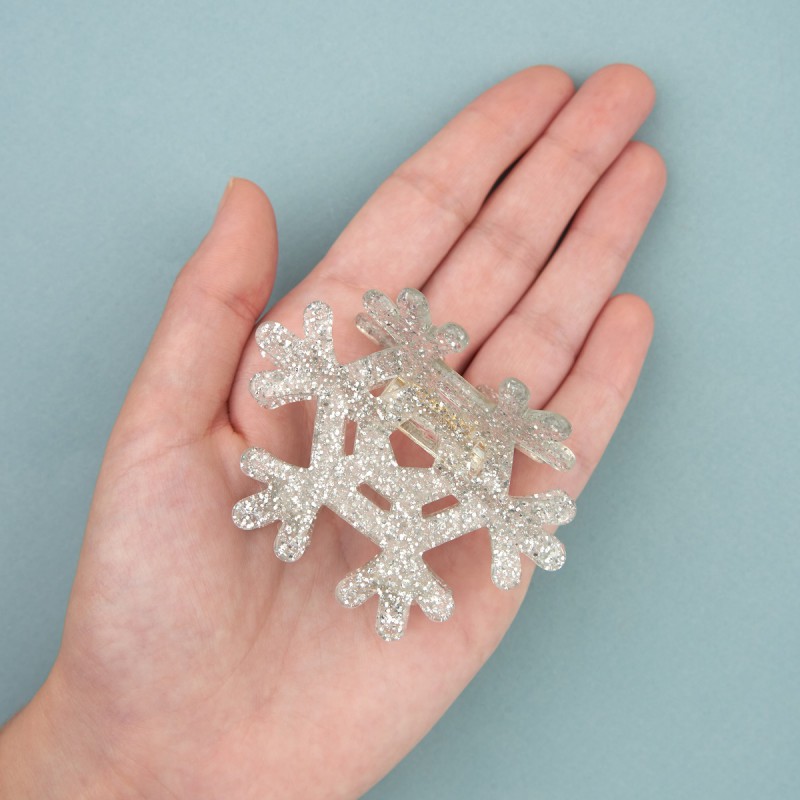 Que serait la magie de Noël sans de gros flocons qui tombent du ciel ? En attendant que le ciel réalise nos rêves de féérie, on porte cette pince à cheveux pailletée qui ressort joliment sur toutes les chevelures.