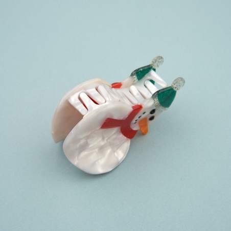 Ho ho ho ! Voilà le plus beau des bonhommes de neige ! On craque pour son bonnet et son écharpe pailletés, sa bouille souriante et ses yeux en strass pour un regard scintillant. Une pince à cheveux de Noël originale pour célébrer la saison des fêtes comme il se doit.