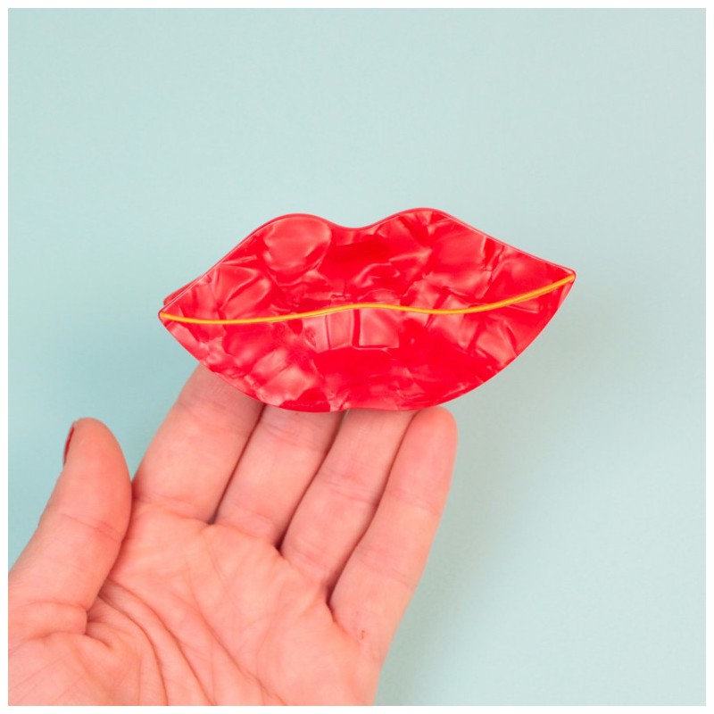 Une belle pince à cheveux en forme de bouche rouge pulpeuse à souhait à clipser dans vos cheveux pour égayer une tenue un poil trop sage.