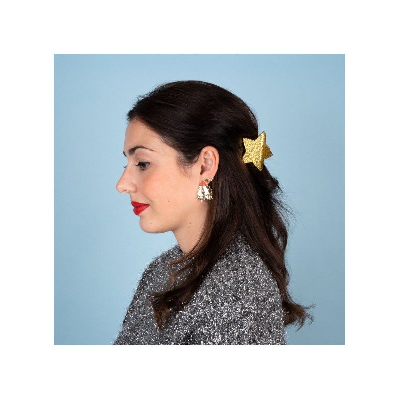 L’étoile dorée trouve habituellement sa place en haut du sapin… Cet hiver elle brillera aussi au sommet de nos têtes ! On adore cette pince à cheveux pailletée de saison qui ajoute une touche de féérie à nos coiffures d’hiver. À porter par une ou par deux pour toujours plus de paillettes dans nos vies. Et quand on ne la met pas, pourquoi pas la clipser à notre grosse écharpe ou à l’anse de sac à main pour décorer joliment notre tenue !
