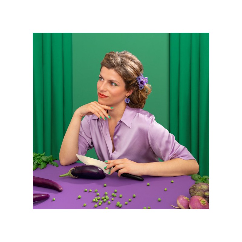 Une pince à cheveux composée de trois belles pensées mauves nacrées pour rendre votre chignon spectaculaire. La touche de couleur pop qui manquait à votre look !