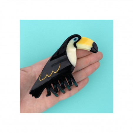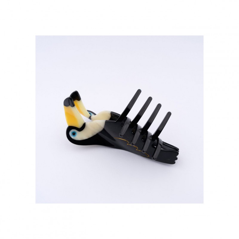 Un joli Toucan en guise de pince à cheveux ! On craque pour cet oiseau graphique au plumage noir & blanc, et au bec impressionnant dans les tons jaune-orangé.