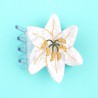 Un magnifique lys blanc en guise de pince à cheveux XL ! On adore cette fleur pleine de symbolique, noble et délicate avec ses jolis pétales nacrés et ses pistils tout en paillettes. Un accessoire pour cheveux particulièrement indiqué pour les épaisses toisons qui sublime toutes les coiffures en un rien de temps !