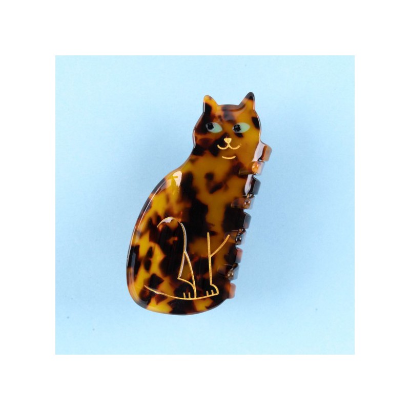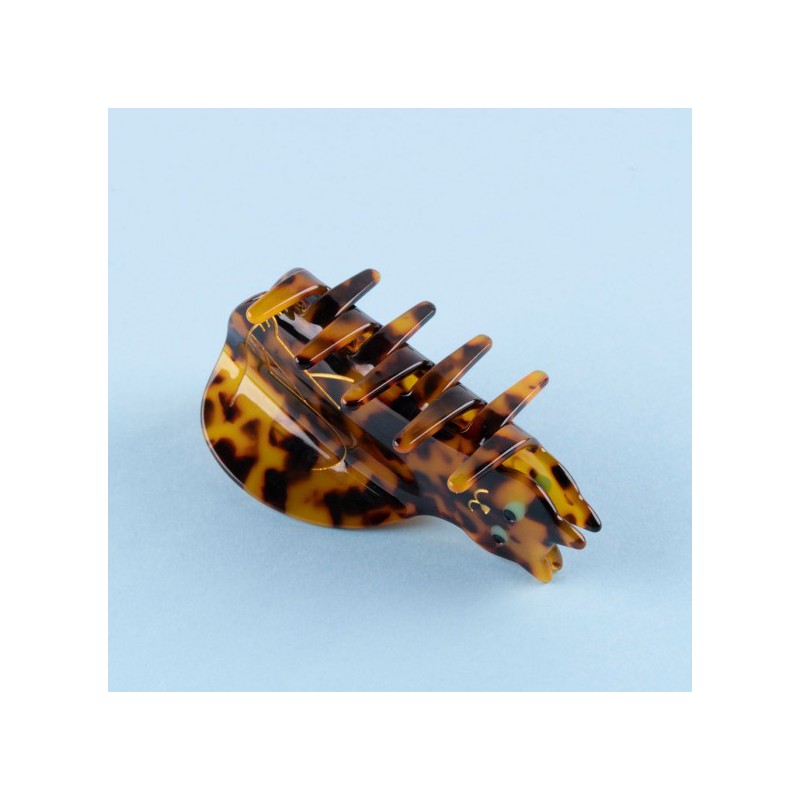 Une pince à cheveux chat bengal pour ajouter une touche féline et élégante à nos coiffures. On adore ce chat semblable à une mini panthère, avec son pelage tacheté façon écaille de tortue et ses grands yeux verts. Cet accessoire maintient fermement tous les chignons et demi-queues avec ses grandes griffes solides. On raffole de son côté rétro !