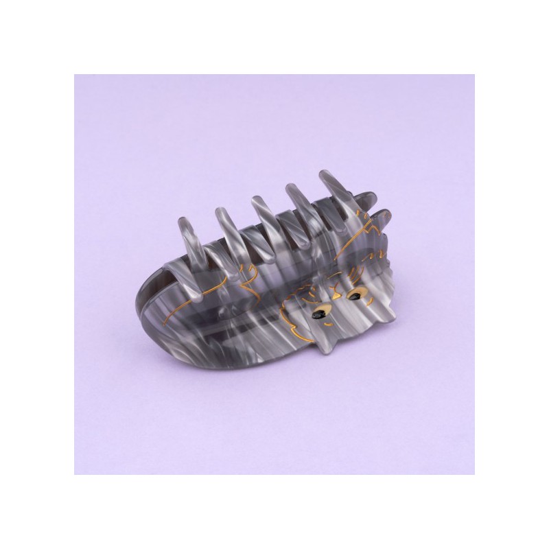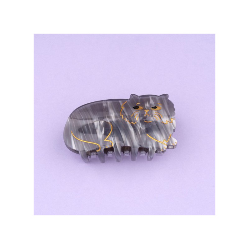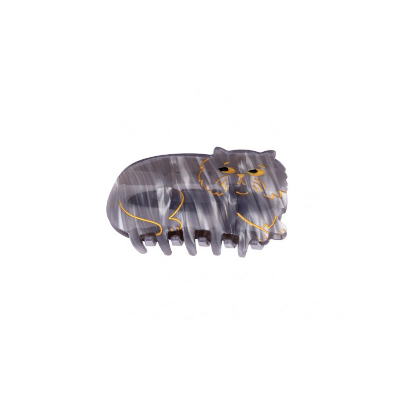 Nous avons choisi pour cette pince à cheveux un joli gris irisé qui imite à merveille le poil doux et soyeux de ce beau félin. Vive Suzette !