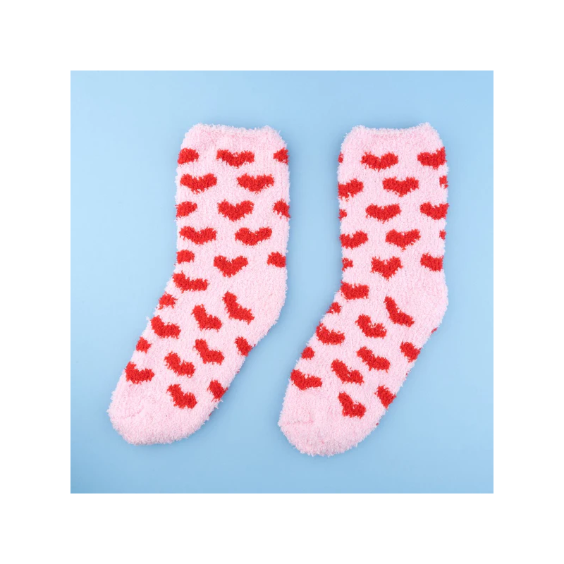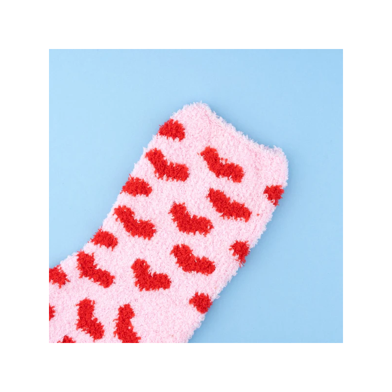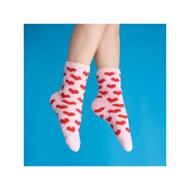Des chaussettes moumoute cocooning pour rester bien au chaud tout l’hiver. On adore leur matière fluffy qui protège nos pieds de manière si cosy. Des chaussettes pilou pilou couvertes de beaux cœurs rouges qui nous donnent l'impression de marcher sur un nuage !