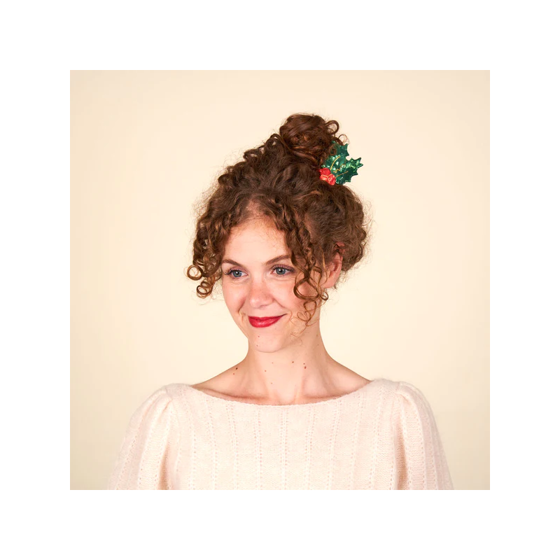 Une belle pince à cheveux kitsch irisée en forme de branche de houx, pour des coiffures canons tout en restant de saison ! L’excuse parfaite pour tenter un rapprochement avec son crush pendant les fêtes...