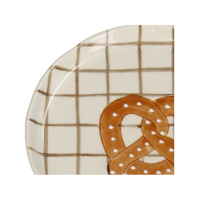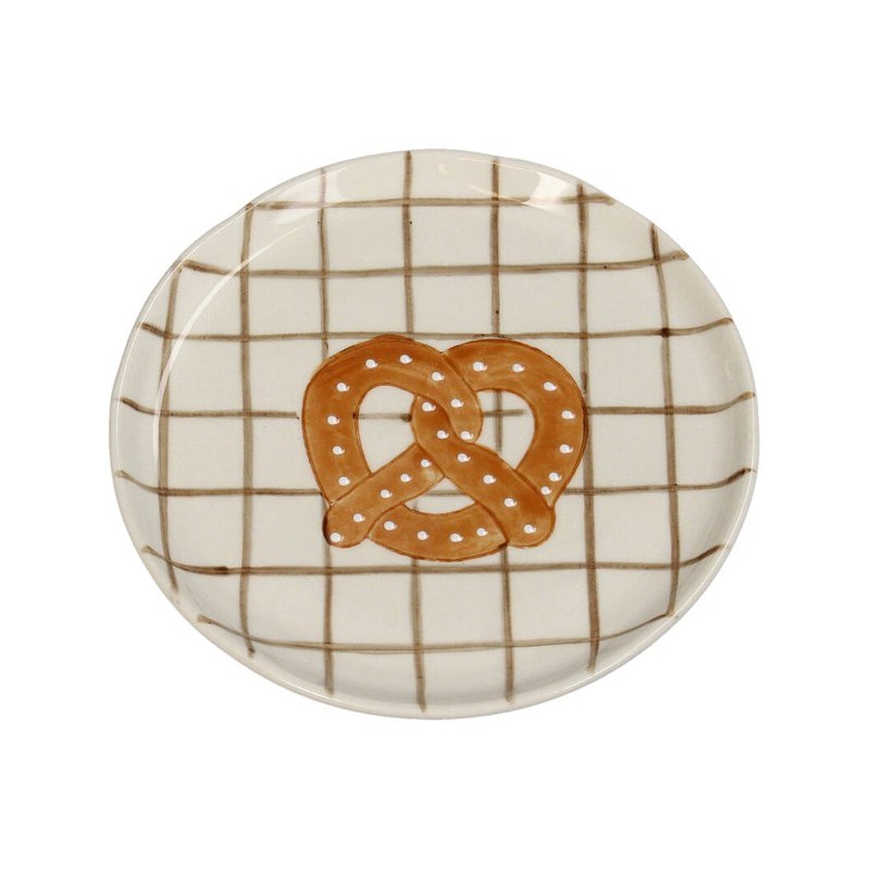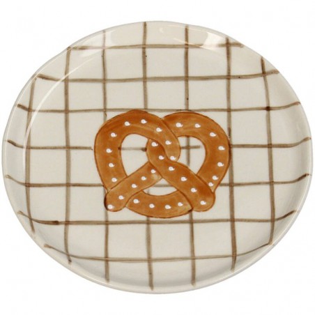 Assiette en céramique ornée d'un bretzel, idéal pour les en-cas ou comme élément décoratif.