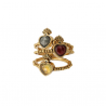Bague en laiton plaqué or 3 microns d’or 999/1000, pierre semi précieuse (pyrite) et mini strass. Disponible en Citrine, Hessonite et Pyrite. Pierre 1/1 cm.