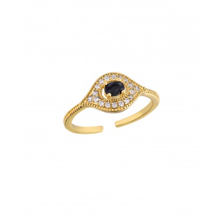 La bague BLACK MAJESTIC EYE de MYA—BAY, dorée à l’or fin recyclé 24 carats, est l’une de nos bagues “essentielles” — élégante, moderne et un brin rock.