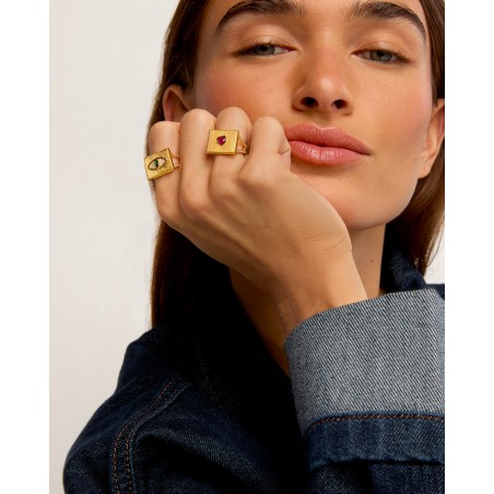 La bague EYE I LOVE YOU de MYA—BAY, c’est l’amour… mais version protectrice. Ajustable pour s’adapter à tous les doigts, elle dévoile un rectangle en or brossé dans lequel s’inscrit un œil moderne, symbole de vigilance, de bienveillance et de force intérieure. Un bijou qui dit je veille sur toi, je veille sur nous, mais aussi je veille sur moi — parce que l’amour commence toujours par là. Elle réunit sens, style et personnalité, avec ce petit twist MYA—BAY qui réveille la femme forte, intuitive et assumée qui sommeille en chacune de nous.