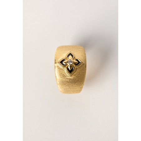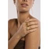 La bague BLACK LOTUS CUFF de MYA—BAY met à l’honneur le symbole du lotus dans une version puissante et contemporaine. Réalisée en or brossé et ajustable, cette bague cuff au design affirmé se distingue par un motif lotus souligné d’émail noir. Symbole fort et spirituel, très présent dans la culture indienne, le lotus apporte ici une touche élégante et faussement sage à une pièce au caractère bien marqué.