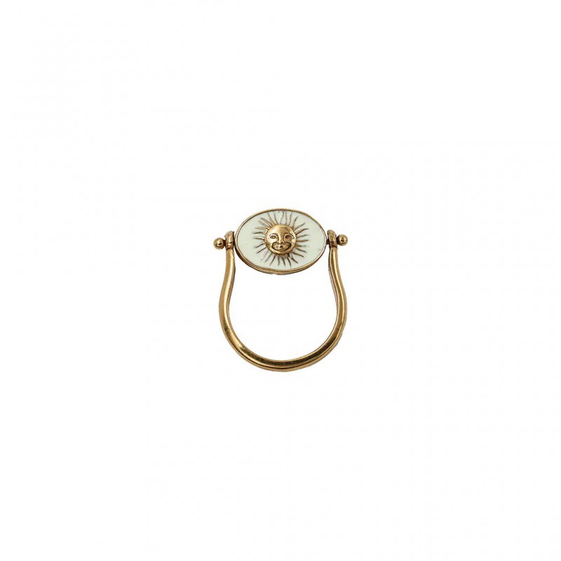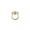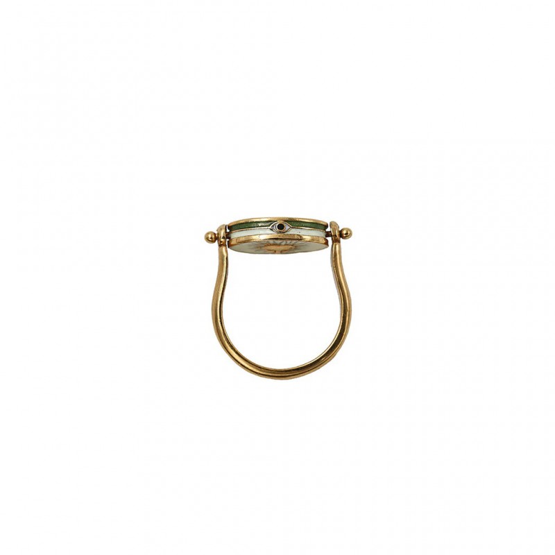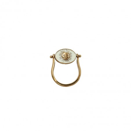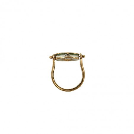 Bague pivot double-face en laiton plaqué or 3 microns et pierre semi-précieuse. La face 1 avec une pierre ronde et contour émaillé.
