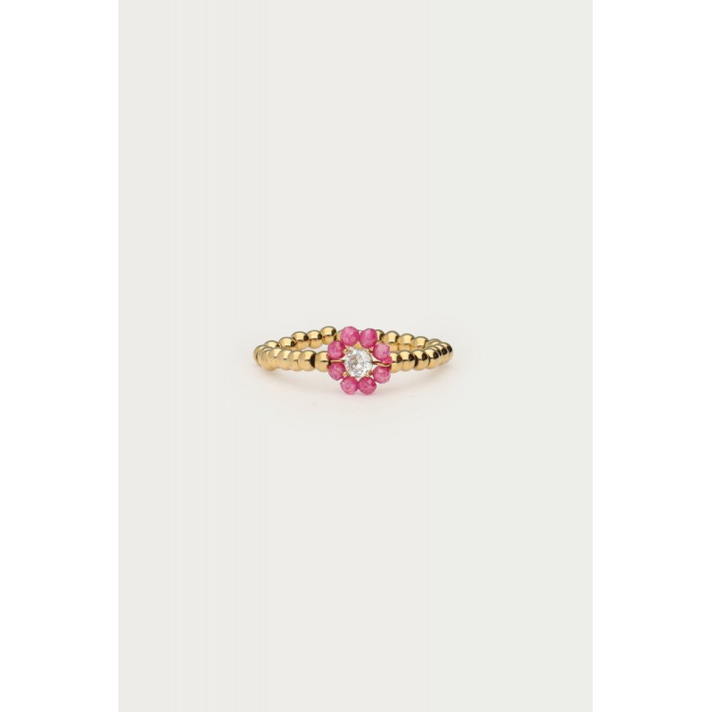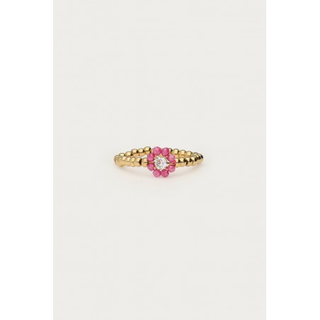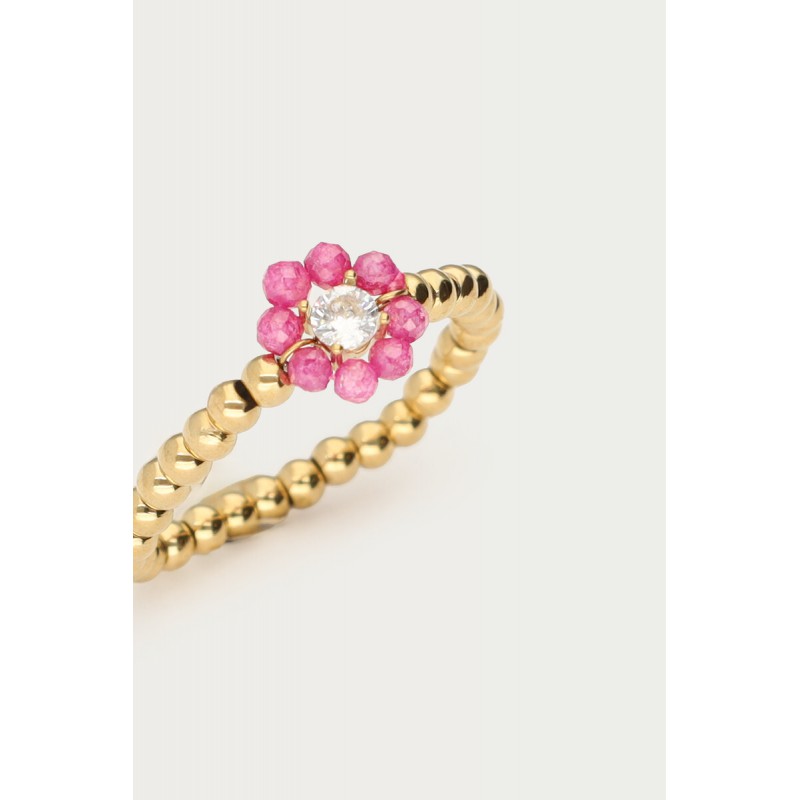 BAGUE BOTANICAL EXTENSIBLE AVEC FLEUR EN PERLE FANTAISIE ROSE