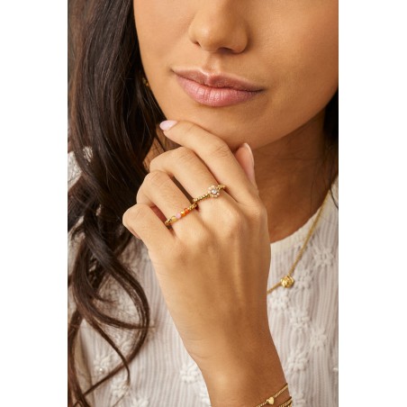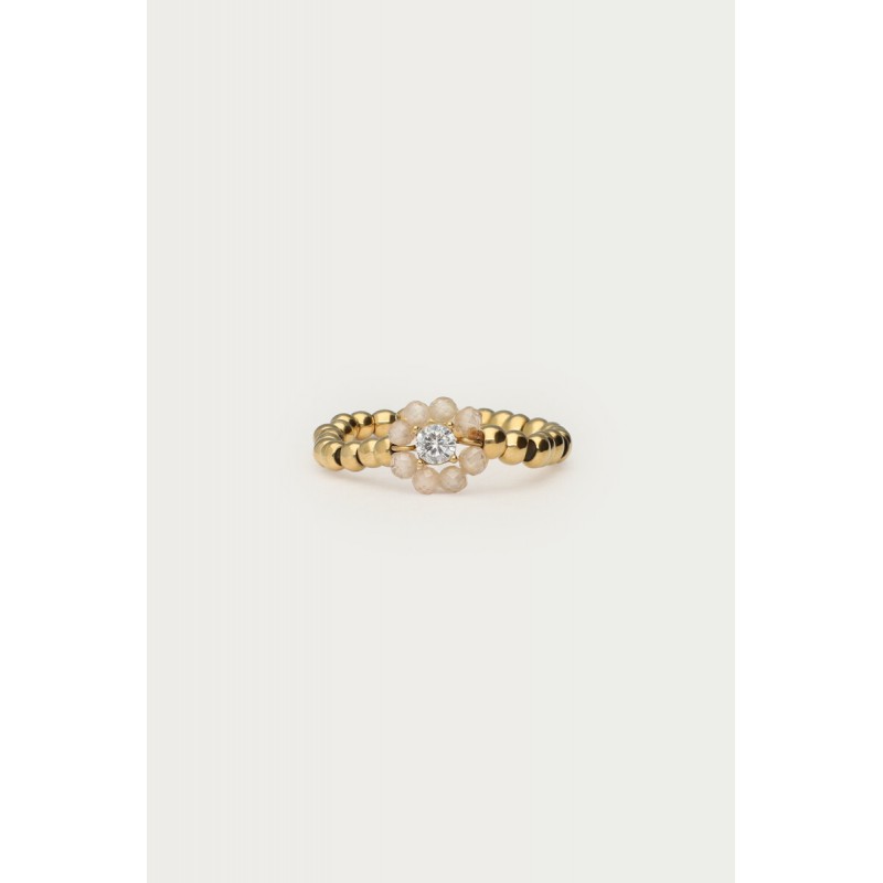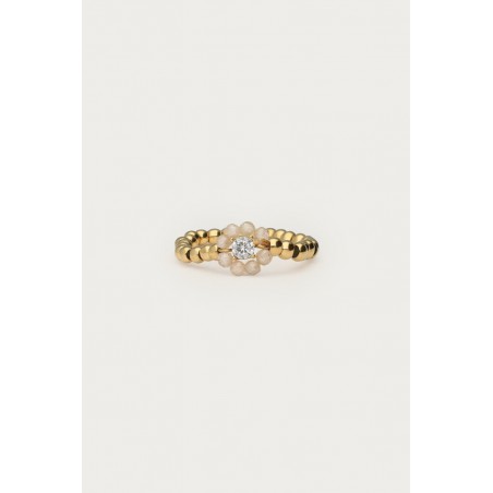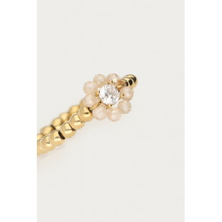 BAGUE BOTANICAL EXTENSIBLE AVEC FLEUR EN PERLE FANTAISIE BEIGE