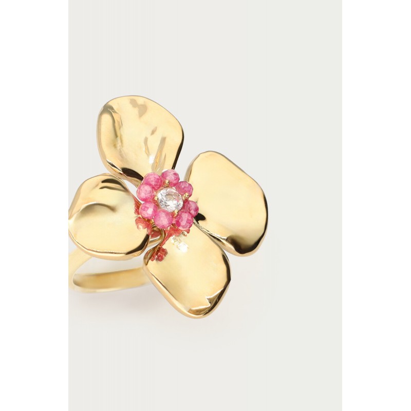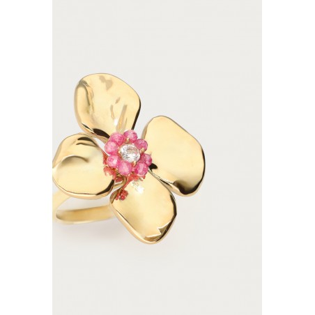 BAGUE BOTANICAL AVEC FLEUR ET PERLES FANTAISIE ROSES