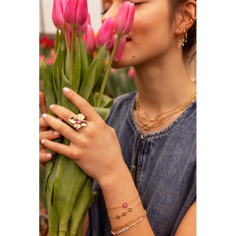 Des couleurs douces et fraîches, des détails emblématiques de My Jewellery et des accents délicats font ce bijou le choix parfait pour un nouveau départ. Cette bague Botanical avec fleur et perles fantaisie roses de My Jewellery allie douceur des couleurs et féminité affirmée. Conçue en acier inoxydable premium, 100 % résistante à l'eau et aux rayures, elle est parfaite pour un usage quotidien. Porte-la comme pièce forte ou combine-la avec d’autres bijoux. Un cadeau élégant et raffiné.