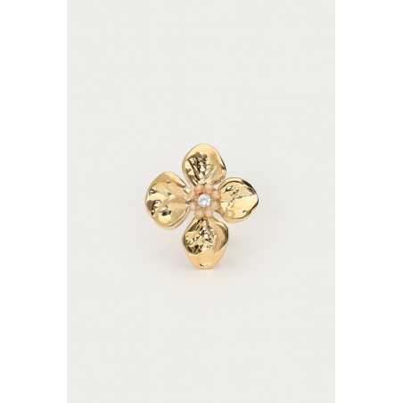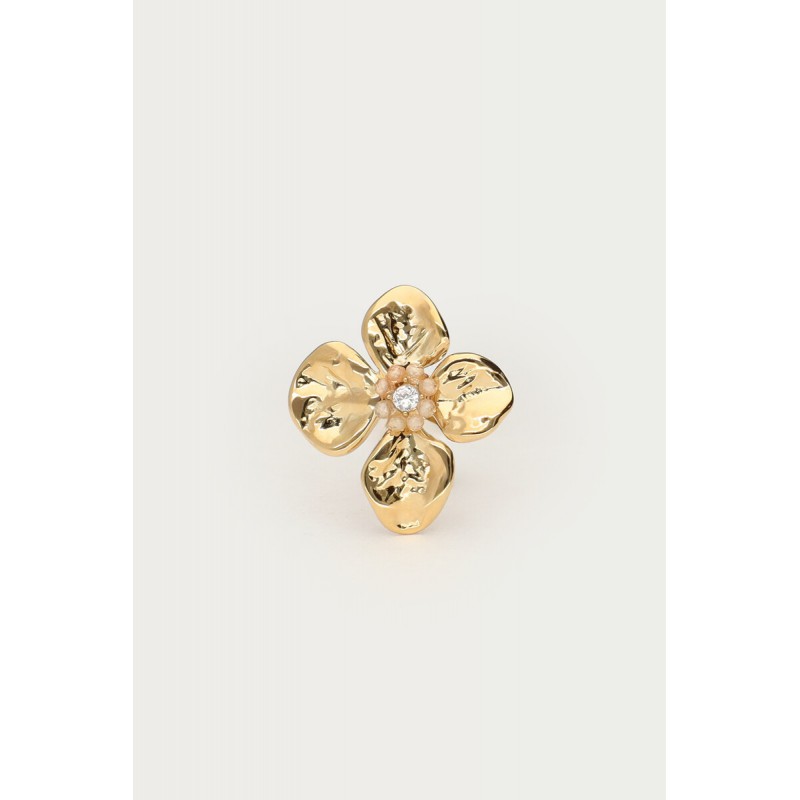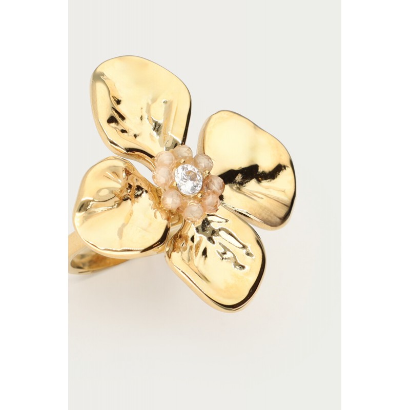 BAGUE BOTANICAL AVEC FLEUR ET PERLES FANTAISIE BEIGES