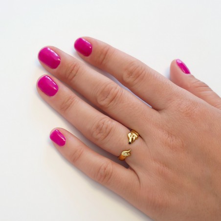 Cette jolie bague est plaquée or (0,5 microns), et elle convient à tous les doigts du monde puisqu’elle est ajustable, pour avoir un mignon petit toutou qui veillera toujours sur vous.