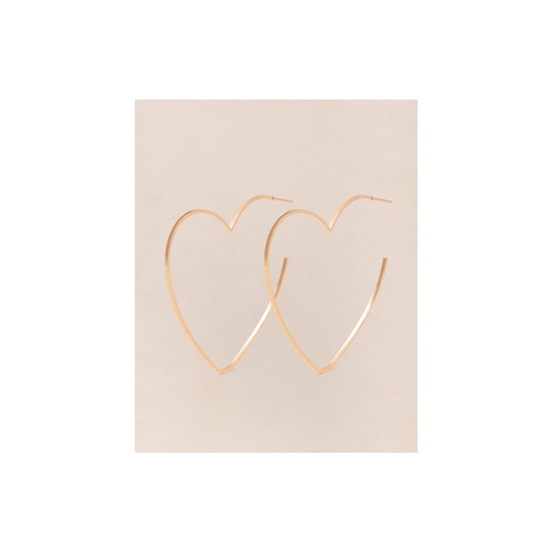 - Boucles d'oreilles créole grands coeurs, en laiton, plongées dans un bain d'or 24 carats