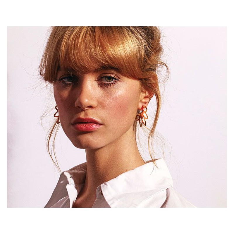 Dessiné par Chic Alors,ce motif de créoles composées de cinq pétales ajourés renoue avec le style floral géométrique qui a fait le succès Chic Alors.