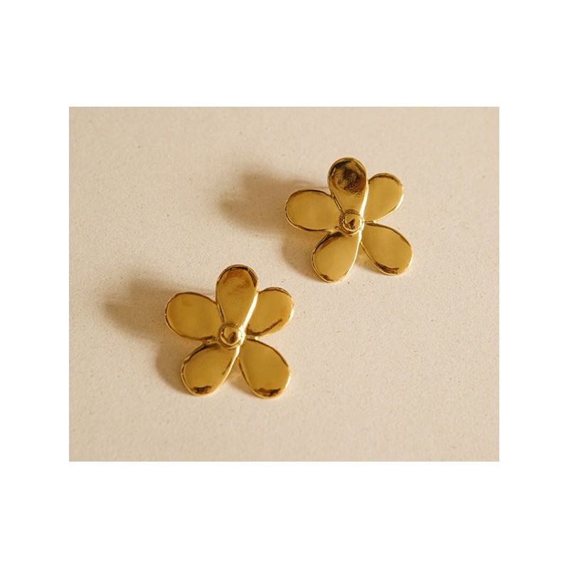 Ces boucles d'oreilles fleur dont le motif original a été sculpté par la créatrice présentent une irrégularité délicate qui ajoute un charme précieux et une âme au bijou.