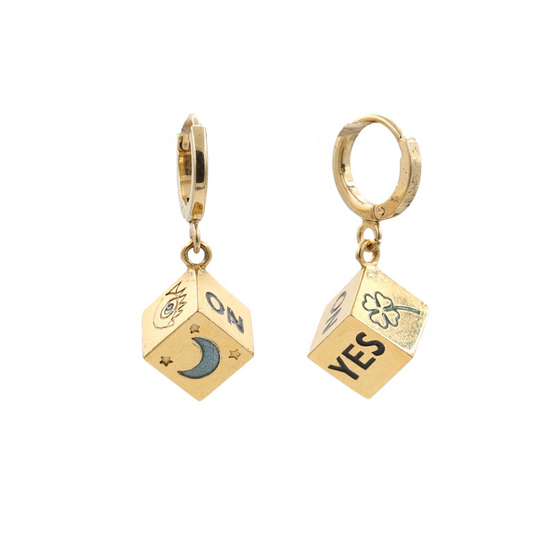Boucles d’oreilles en laiton bain d’or, 1 micron d’or 999/1000 et émail.