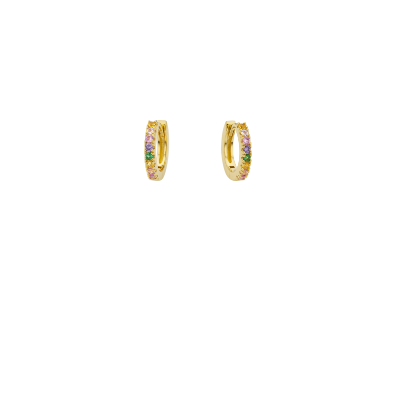 Les boucles d'oreilles RAINBOW DELHI sont dorées à l'or fin 24 carats et ornées de zircons multicolores.