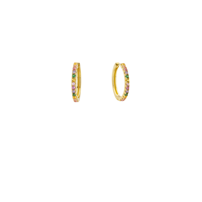 Les boucles d'oreilles RAINBOW LOVELY DELHI sont dorées à l'or fin 24 carats et ornées de zircons multicolores.