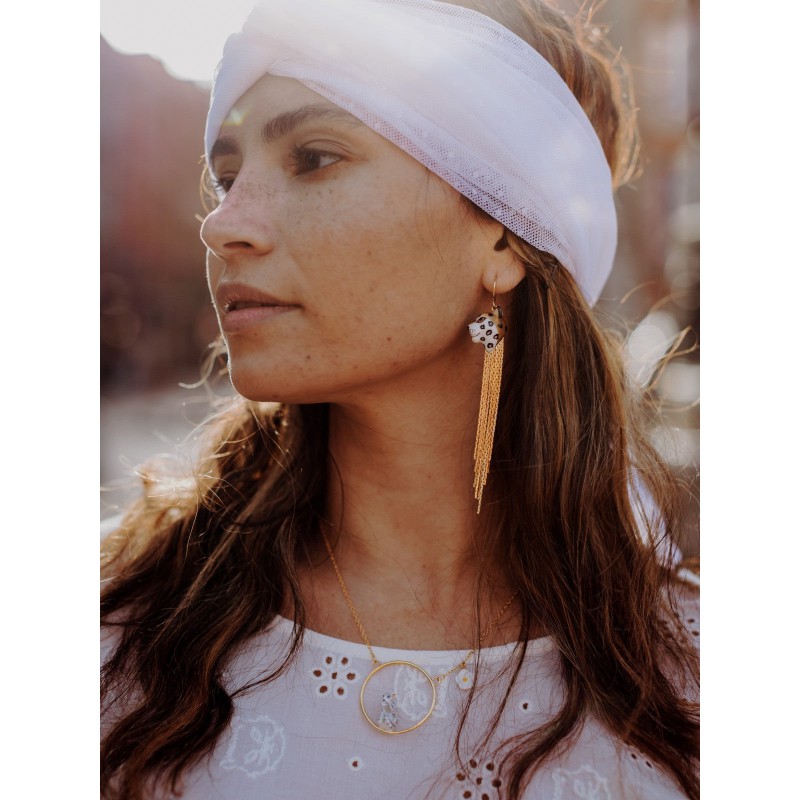 Boucles d'oreilles en porcelaine et laiton doré à l’or fin.