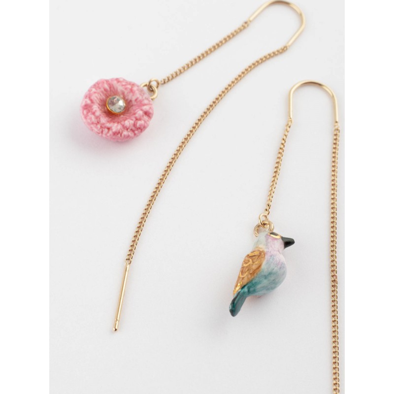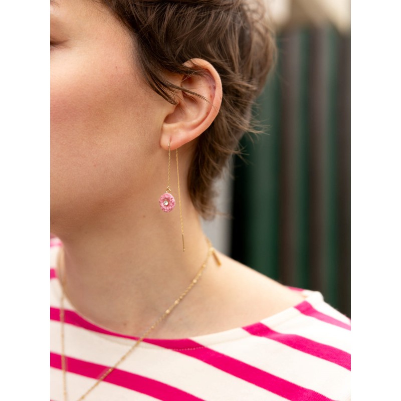 Boucles d'oreilles en porcelaine, zircon et laiton doré à l'or fin.