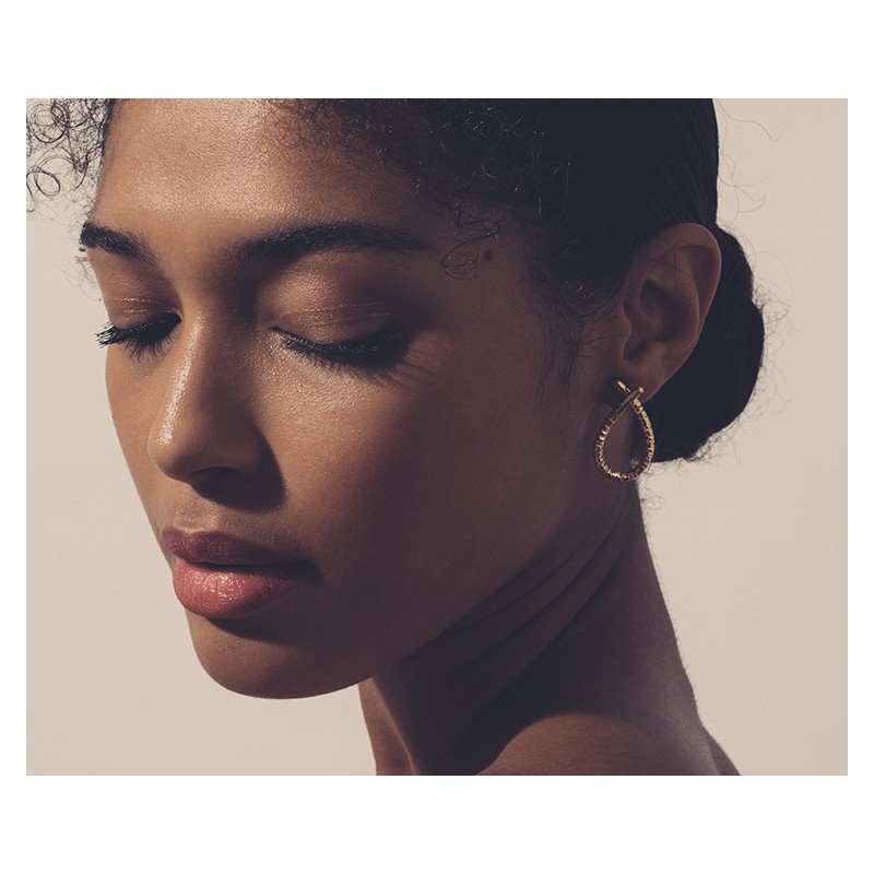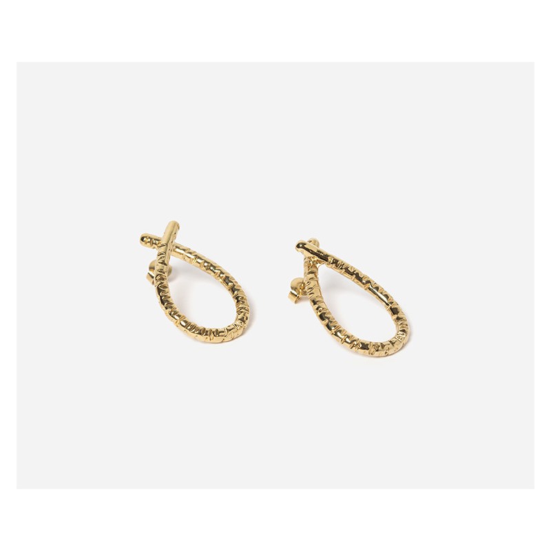 Petites boucles d'oreilles en forme de goutte en métal doré texturé, plaquées à l'oreille