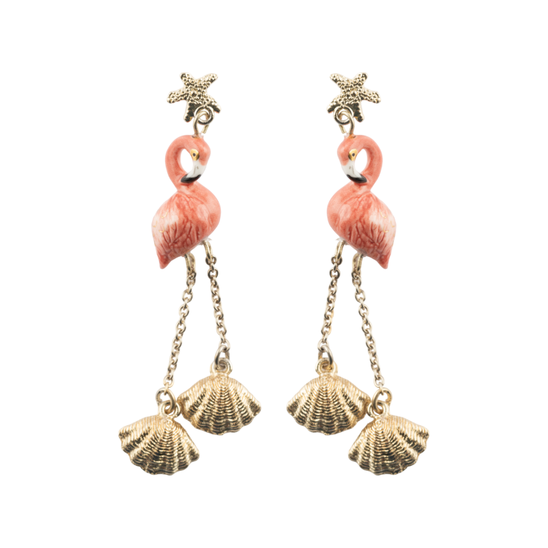 Boucles d'oreilles en porcelaine et laiton doré à l'or fin.
