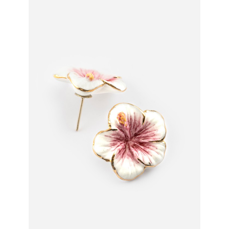 Boucles d'oreilles en porcelaine et laiton doré à l’or fin.