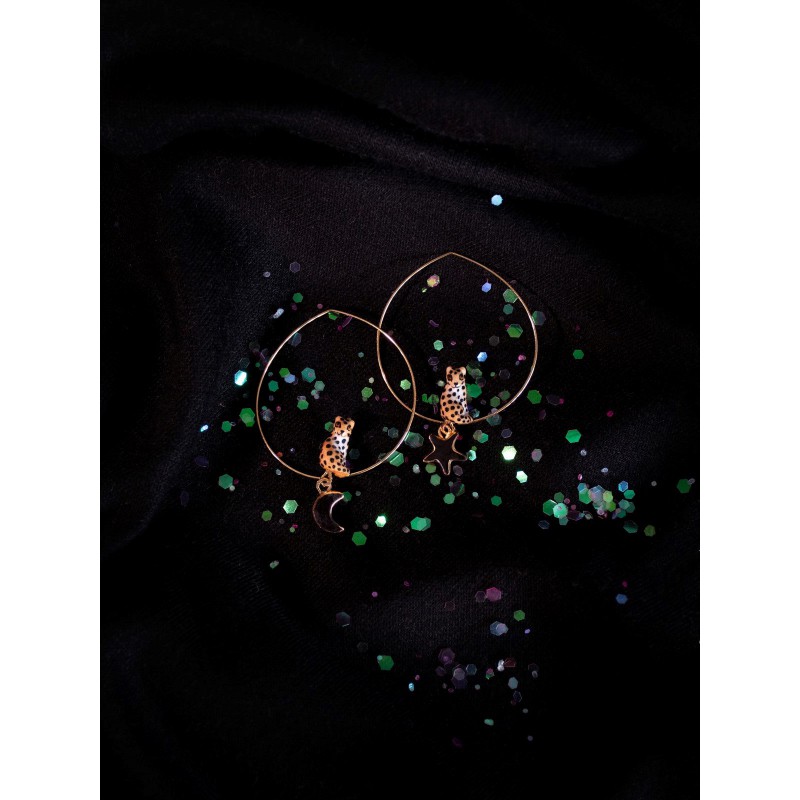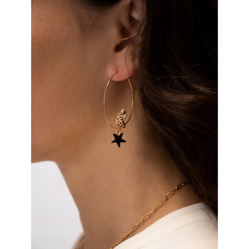 Boucles d'oreilles en porcelaine et laiton doré à l'or fin.