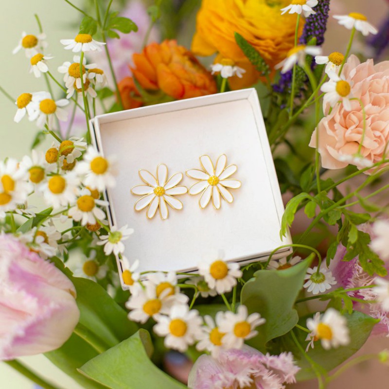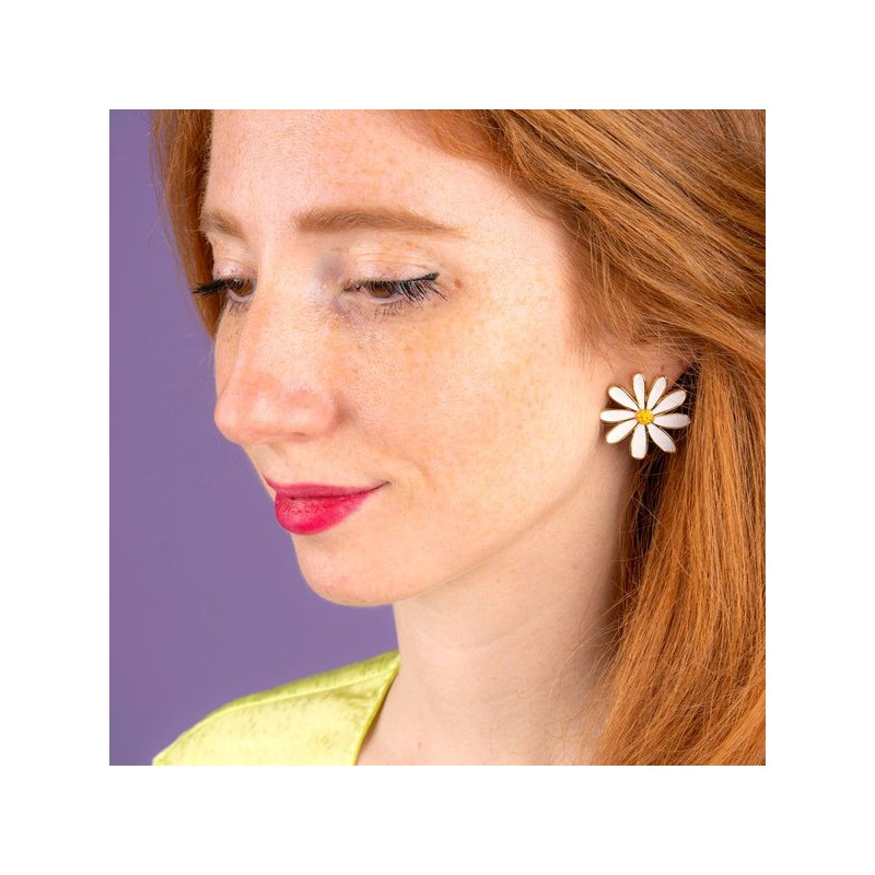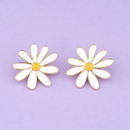 De magnifiques boucles d’oreilles fleur en forme de marguerite ! On craque pour ce maxi bijou plaqué or si printanier avec ses pétales blancs et son pistil jaune vif. Plus besoin d’attendre la belle saison pour voir bourgeonner ces beautés qui fleurissent désormais à nos oreilles toute l’année.