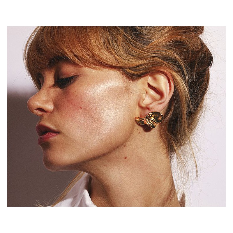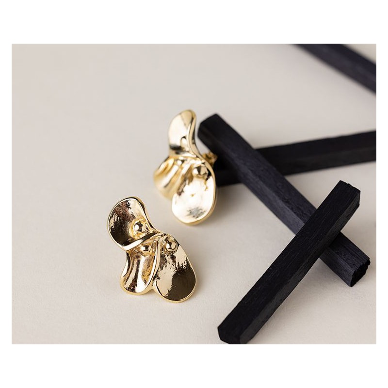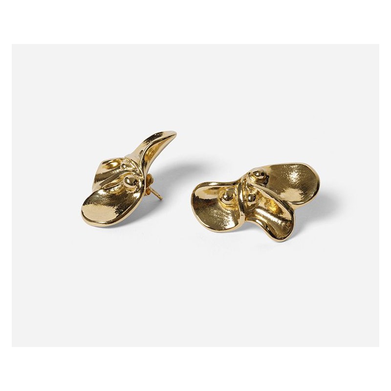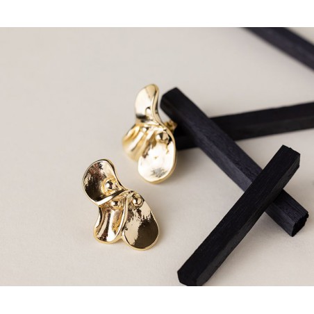 Boucles d'oreilles dorées Chic Alors en forme de fleur, composées de trois pétales.
