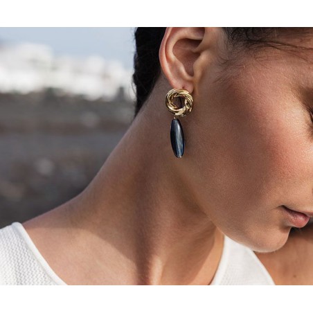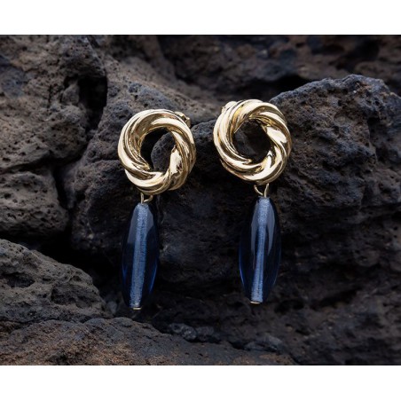 Boucles d'oreilles dorées et bleu pendantes Chic Alors Paris