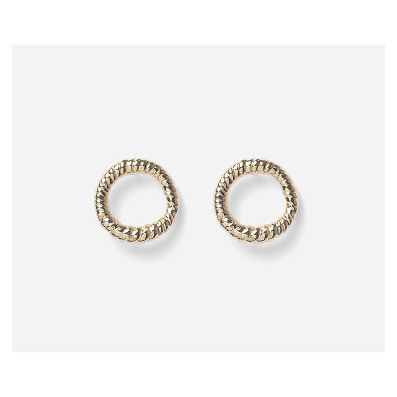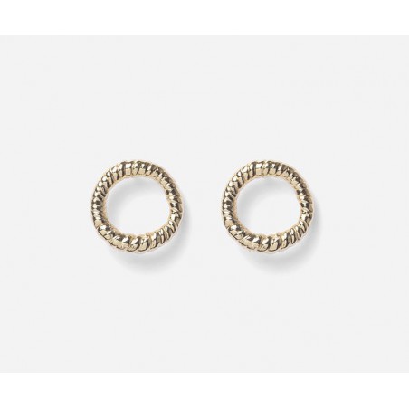 Petites boucles d'oreilles rondes composées d'anneaux dorés torsadés.
