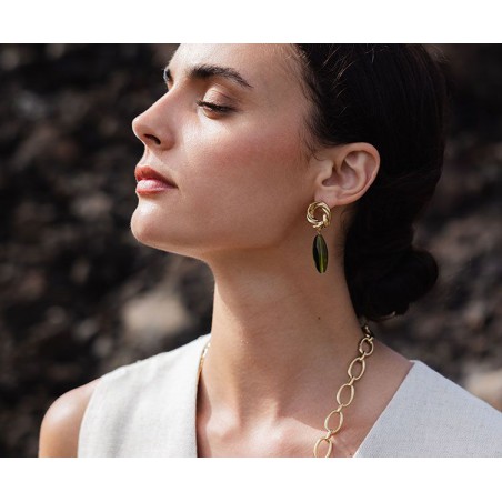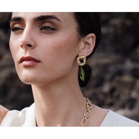 Boucles d'oreilles doré-vert pendantes Chic Alors Paris