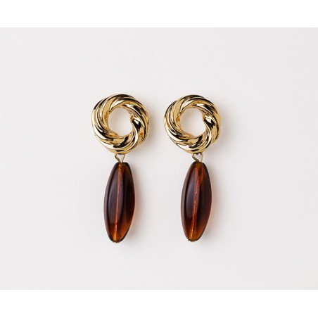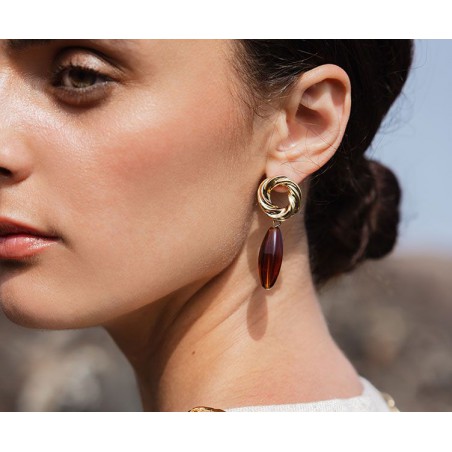 Boucles d'oreilles dorées et marron pendantes Chic Alors Paris